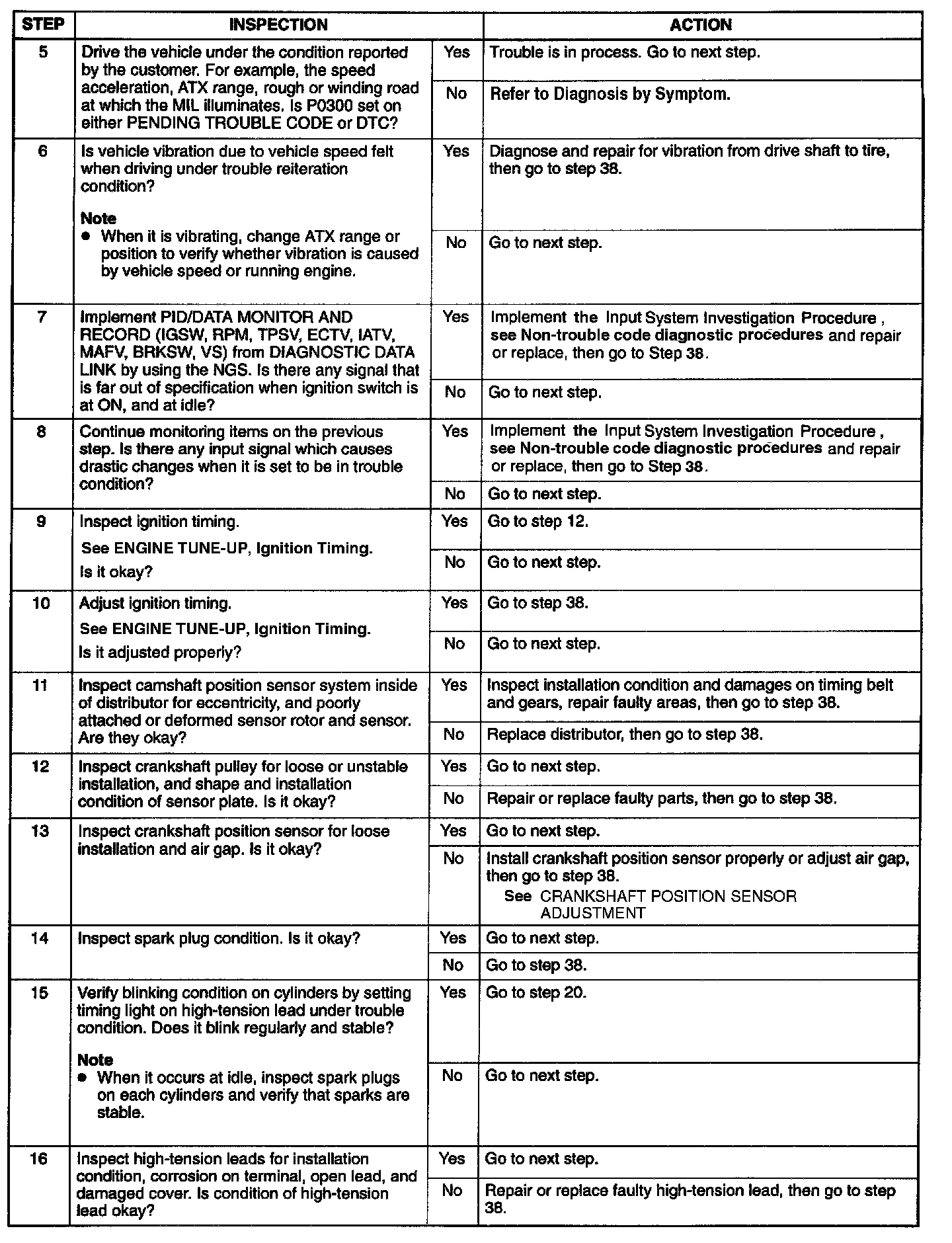 P0300 (Step 5 Thru 16):