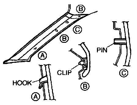 3. Pull the A-pillar trim upward to disengage the hook from the body.