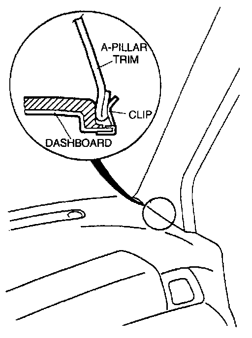^ insert the A-pillar trim into the dashboard installation clip.