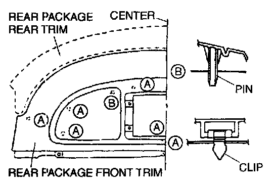 ^ Pull the rear package front trim upward to disengage the clips and the pins from the body.