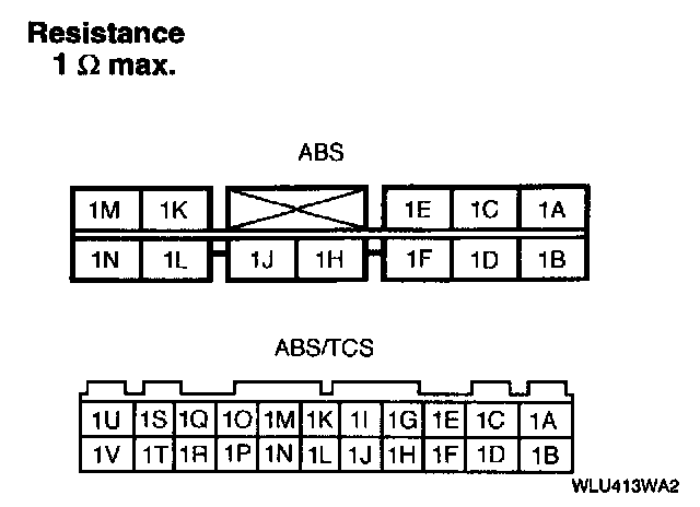 2. Measure the resistance between terminal 1L [1C for ABS/TCS] of the control module connector and a ground.