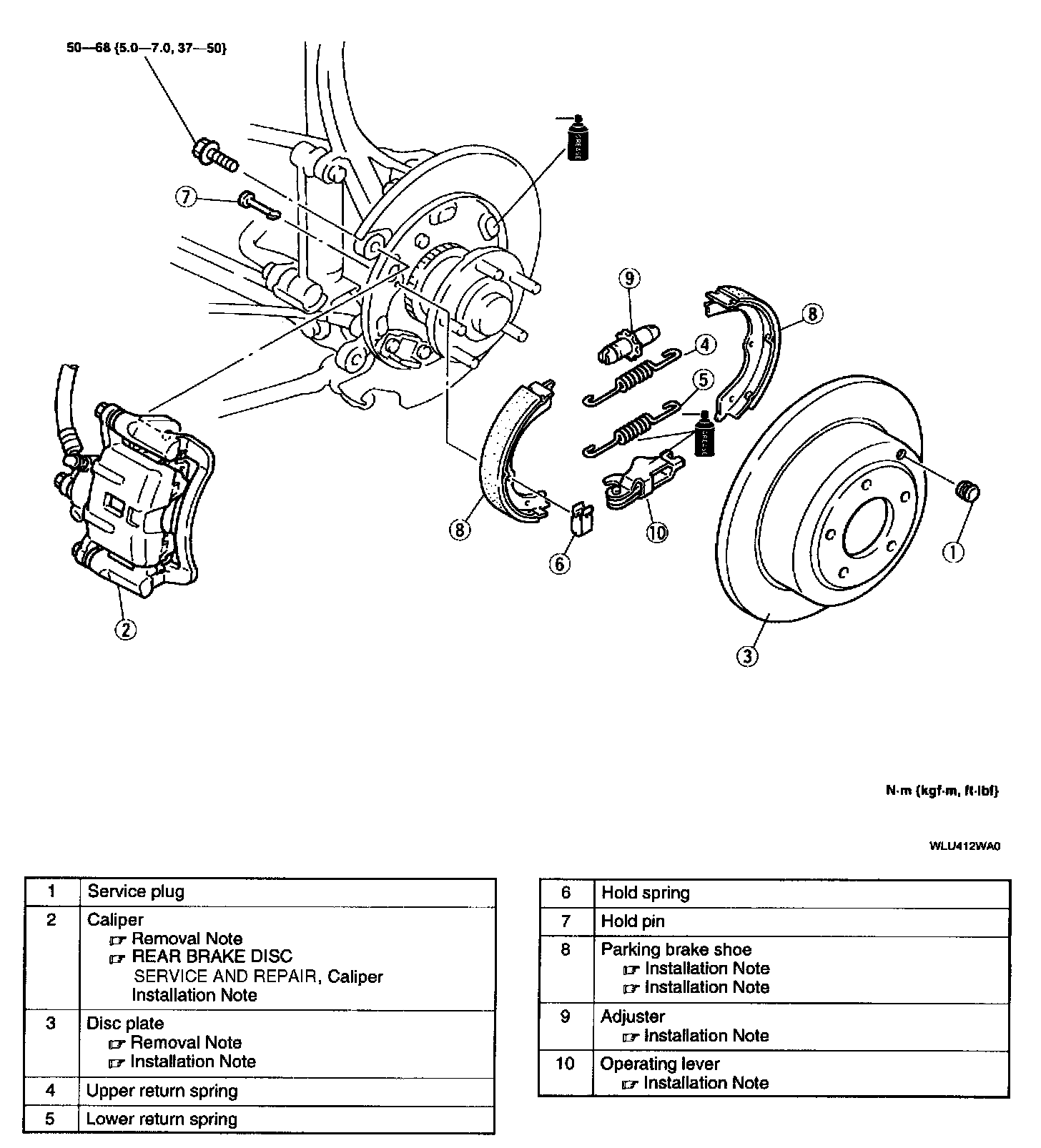 2. If the disc plate is difficult to remove, loosen the parking brake shoes as described below.