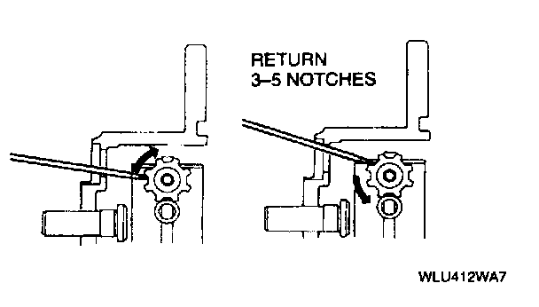 3) Set the shoe clearance to about 0.34 mm (0.013 in) by turning the adjuster 3-5 notches in the opposite direction of the arrow marked on the disc plate.