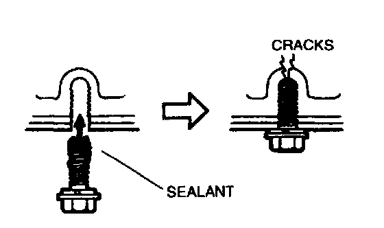^ If the bolts are reused, remove the old sealant from the bolt threads. Tightening a bolt that has old sealant on it can cause thread damage.
