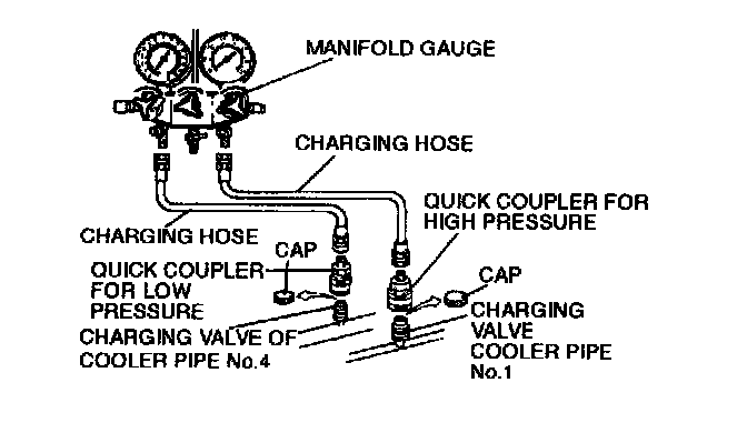 5. Connect the quick couplers to the charging valves of cooler pipe No.1 and No.4.