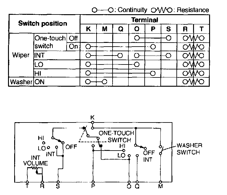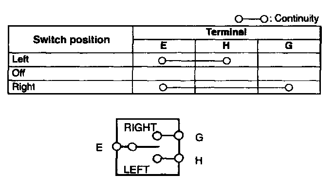 2. Inspect for continuity between the [1][2][3][4][5]combination switch terminals by using an ohmmeter.
