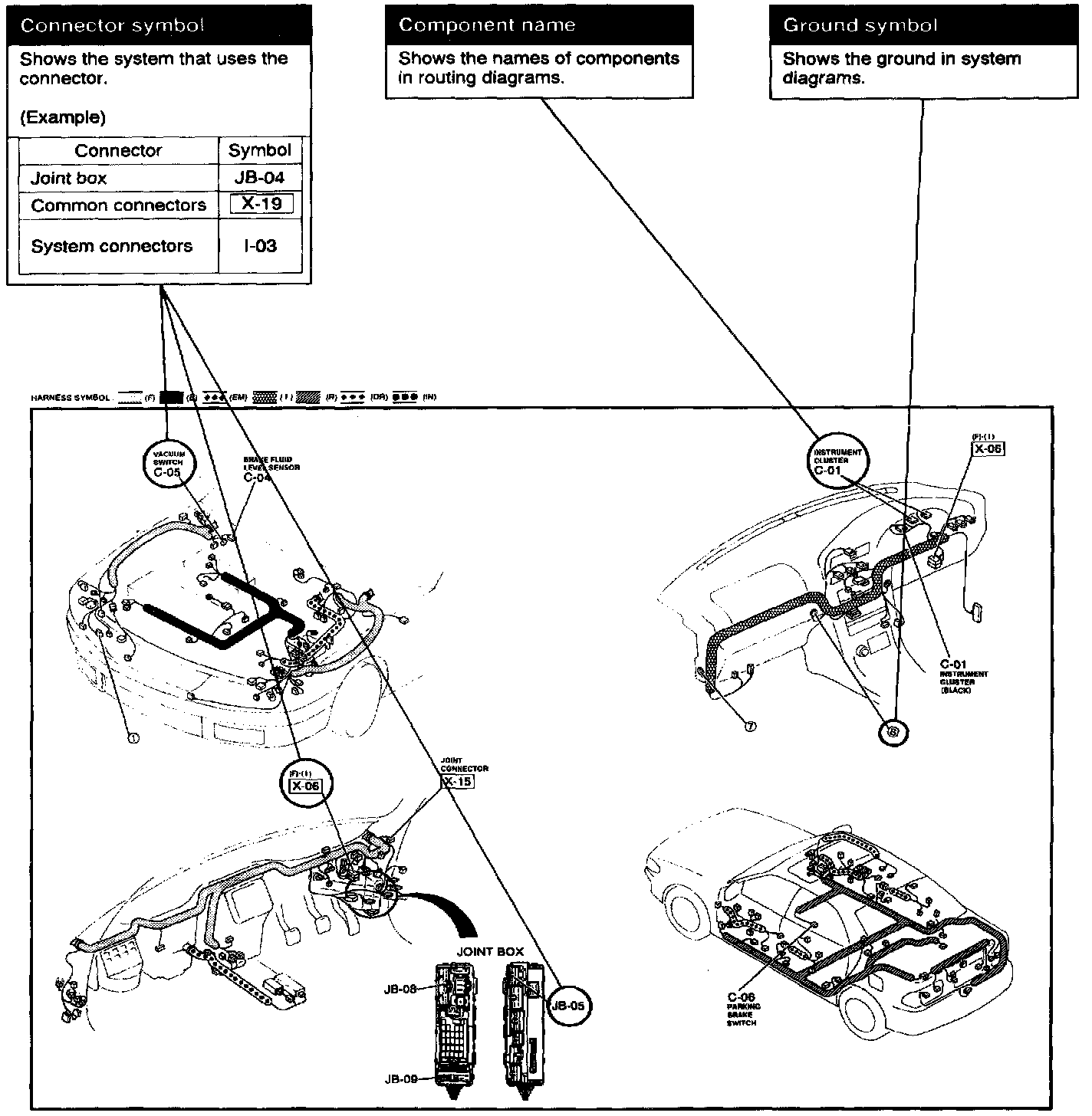 The routing diagram shows where electrical components are on the system circuit diagram by call out line and connector symbols.