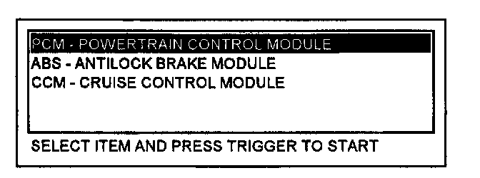2. Select, "PCM - POWERTRAIN CONTROL MODULE" and press the TRIGGER.