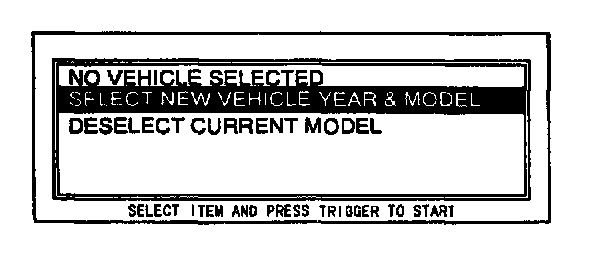 3. Move the cursor to SELECT NEW VEHICLE YEAR & MODEL. Press the trigger key to enter this selection.