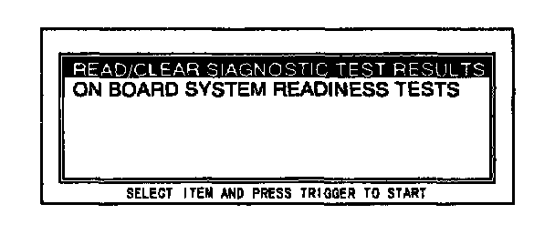 10. Move the cursor to READ/CLEAR DIAGNOSTIC TEST RESULTS. Press trigger key to enter this selection.