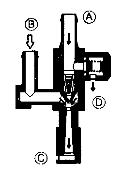 1. Remove the fuel pump (transfer).2. Verify that air flows through the fuel pump from ports A and B to C.