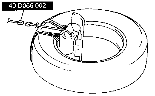3. Tie the air bag module to the tire with the module facing the center of the tire. Wrap the wire harness through the tire and around the air bag module bolts at least four times.