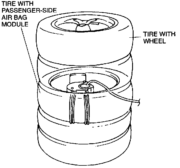 5. Stack the tire with the passenger-side air bag module on top of two tires. Stack a tire on top of the three tires. Stack another tire that has a wheel on top of the tour tires.