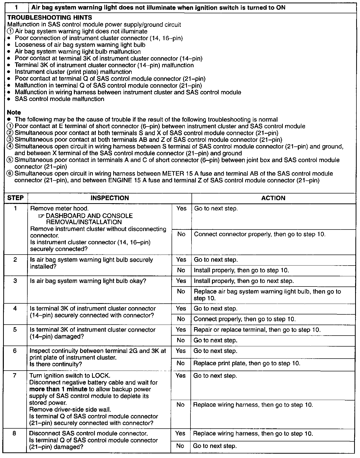 1. Warning Light Does Not Come ON
