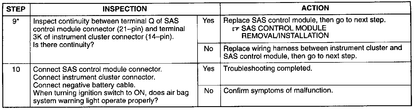 Air bag system warning light does not illuminate when ignition switch is turned ON.