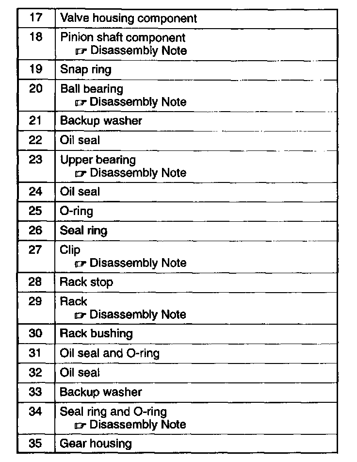 Pinion Shaft Component Disassembly Note