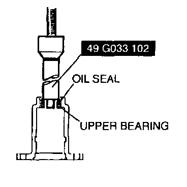 - Press out the upper bearing and the oil seal by using the SST.