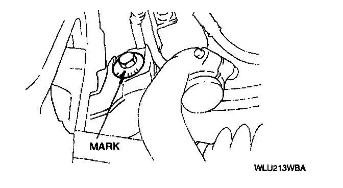 - Before loosening the nut, make a mark on the cam plate and the crossmember for reference during installation.