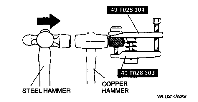 - Remove the upper trailing link ball joint in the same way as the lower trailing link ball joint. (Refer to Lower Trailing Link Ball Joint Removal Note.)
