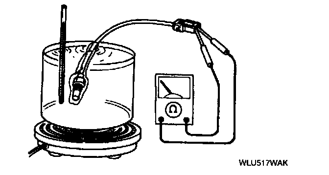 2. Place the transaxle fluid temperature sensor in ATF along with a thermometer as shown, and heat the ATF gradually.