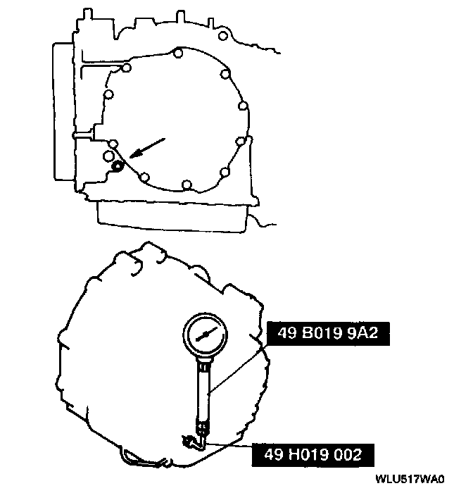 4. Connect the SST (49 B019 902) to the line pressure inspection port.