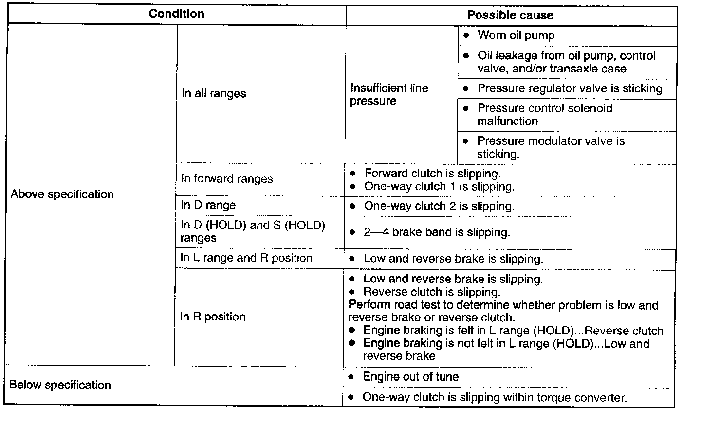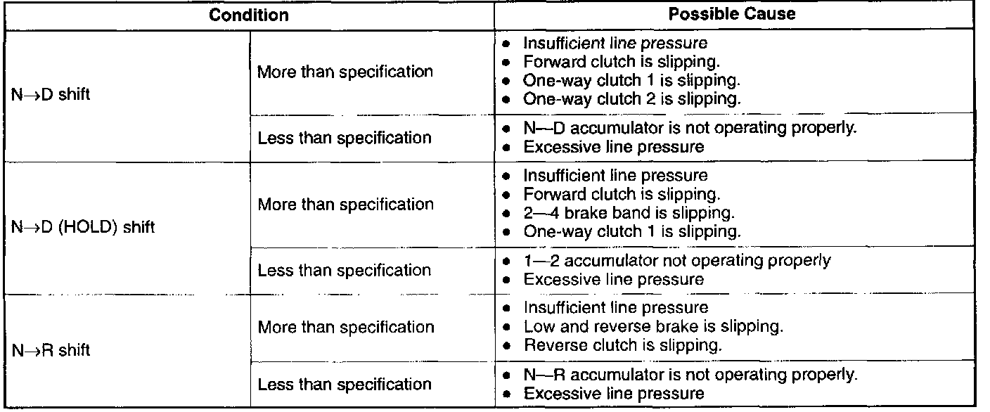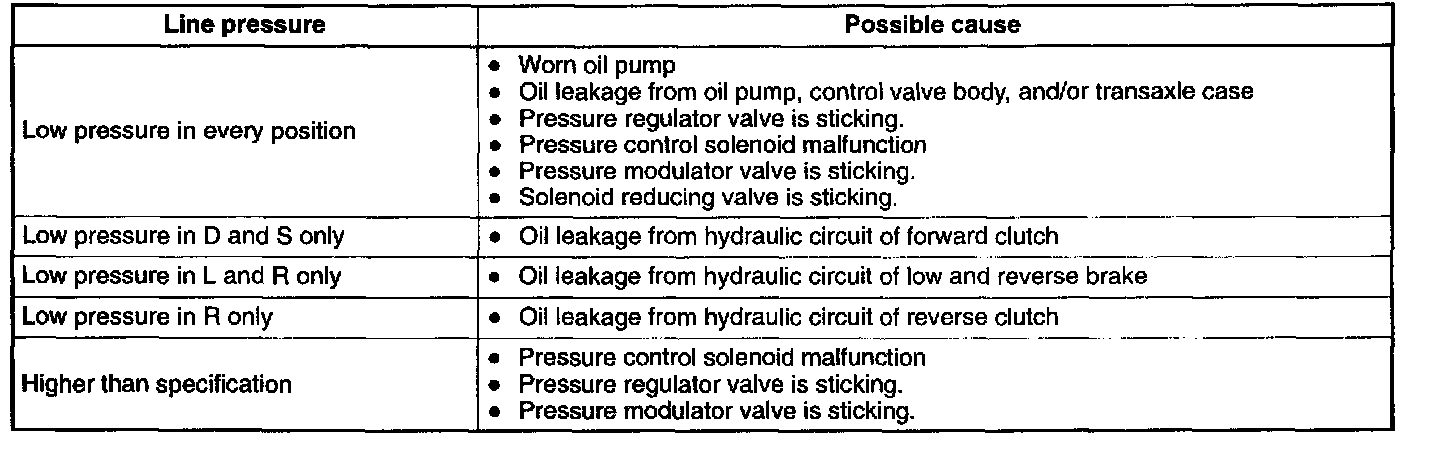 3. Shift the selector lever to D range and read the line pressure at idle.