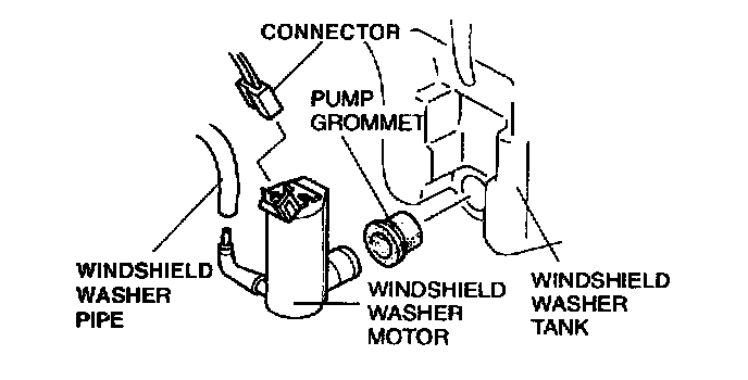 6. Remove the windshield washer motor as shown.