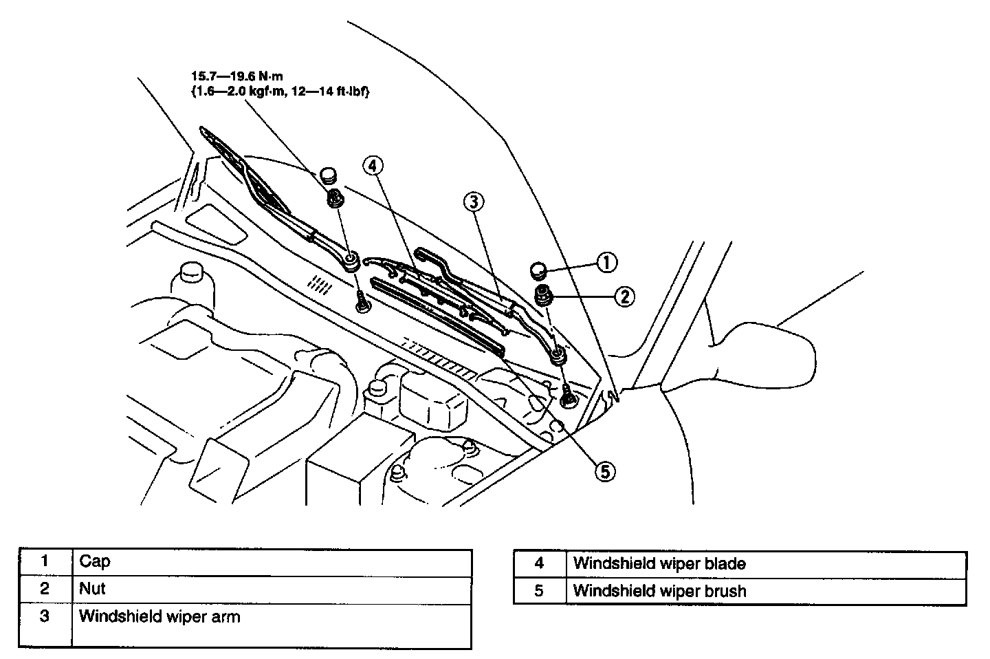 WINDSHIELD WIPER ARM AND BLADE REMOVAL/INSTALLATION1. Remove in the order indicated in the table.