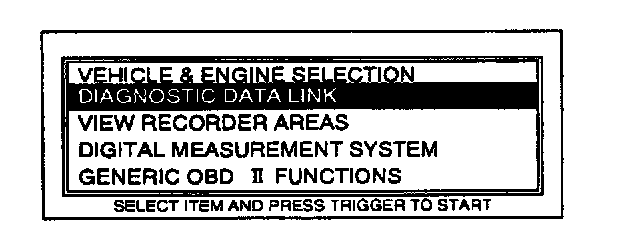 7. Move the cursor to DIAGNOSTIC DATA LINK in the main menu screen. Press TRIGGER to enter this selection.