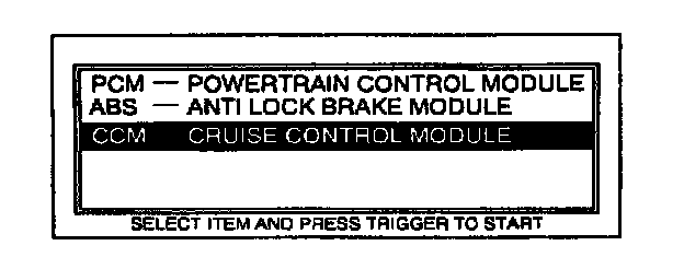 8. Move the cursor to CCM - CRUISE CONTROL MODULE. Press TRIGGER to enter this selection.