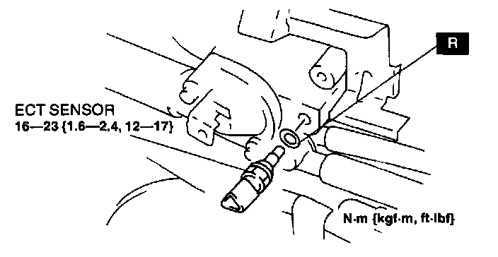 WARNING: When the engine is hot, it can badly burn. Turn off the engine and wait until it is cool before removing or installing the ECT sensor.1. Drain the engine coolant. (Refer to COOLING SYSTEM SERVICE WARNINGS.) (Refer to ENGINE COOLANT REPLACEMENT.)