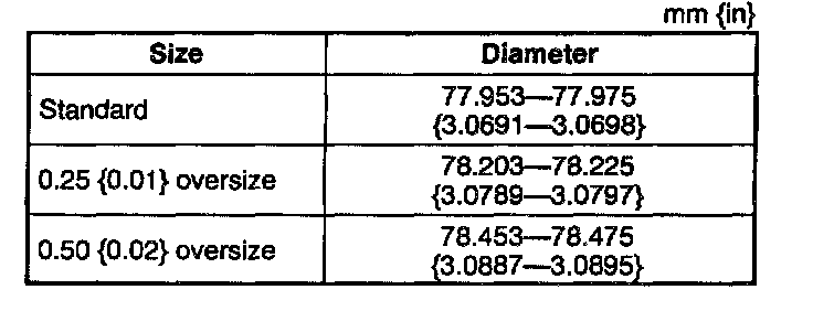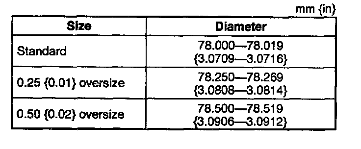 - If the cylinder bore exceeds the wear limit, replace the cylinder block or rebore the cylinder and install the oversize pistons so that the specified piston-to-cylinder clearance is obtained.