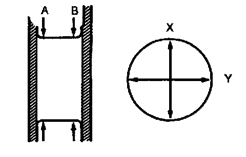 3. Measure the journal diameter in X and Y direction at the two points (A and B) as shown.