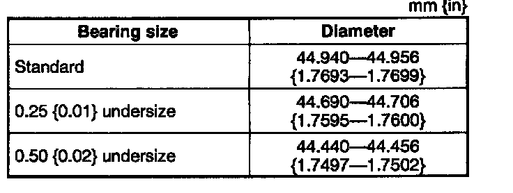 - If it is out of specification, replace the crankshaft or grind the journal and install the undersized bearing.
