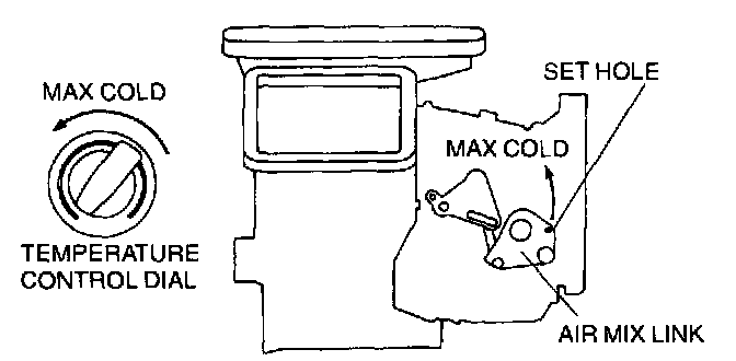 2. Set the air mix link to max cold in the direction of the arrow and insert a screwdriver at the set hole.