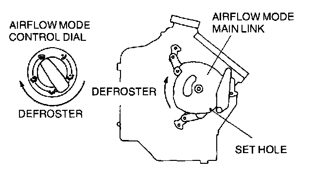 2. Set the airflow mode main link to defroster in the direction of the arrow and insert a screwdriver at the set hole.