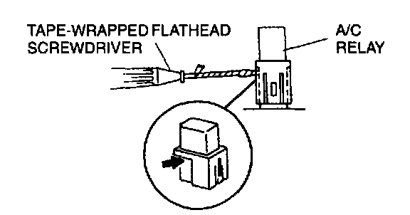 1. Insert a tape-wrapped flathead screwdriver to the A/C relay groove as shown.