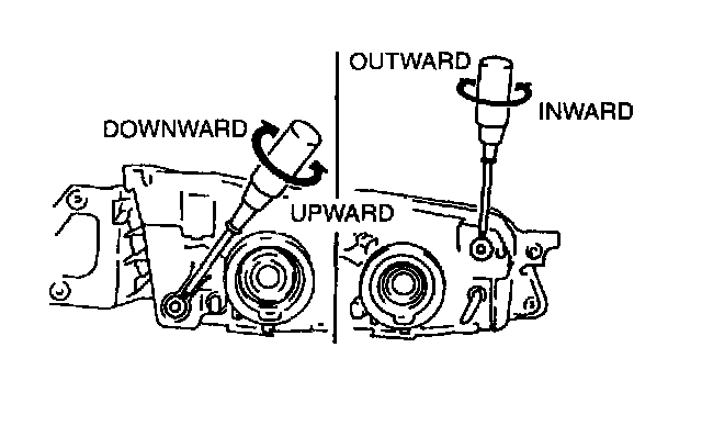 NOTE: If the adjusting screws are tightened first, then loosened, they will continue to loosen when the vehicle is in motion and may cause the headlights to become misaligned.
