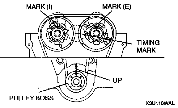 - Timing is normal if: the pulley boss position pin and the camshaft pulley marks (I) and (E) are facing straight up. the timing marks are aligned to the horizontal surface on cylinder head.