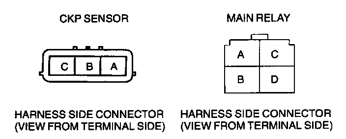 - CKP signal (+) circuit (CKP sensor connector terminal A and PCM connector terminal 21)