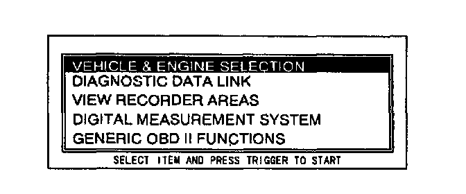 2. Move the cursor to VEHICLE & ENGINE SELECTION. Press the trigger key to enter this selection.