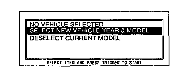 3. Move the cursor to SELECT NEW VEHICLE YEAR & MODEL. Press the trigger key to enter this selection.