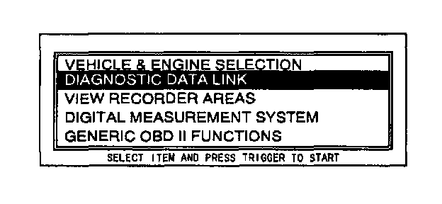 7. Move the cursor to DIAGNOSTIC DATA LINK on the main menu screen. Press the trigger key to enter into menu system diagnostics.