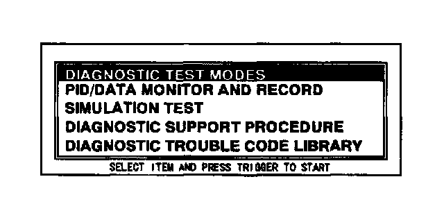 9. Move the cursor to DIAGNOSTIC TEST MODES. Press the trigger key to enter this selection.