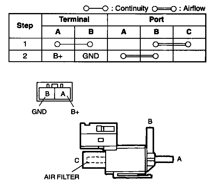 - EGR boost sensor solenoid valve connector terminal B and PCM connector terminal 98 to ground
