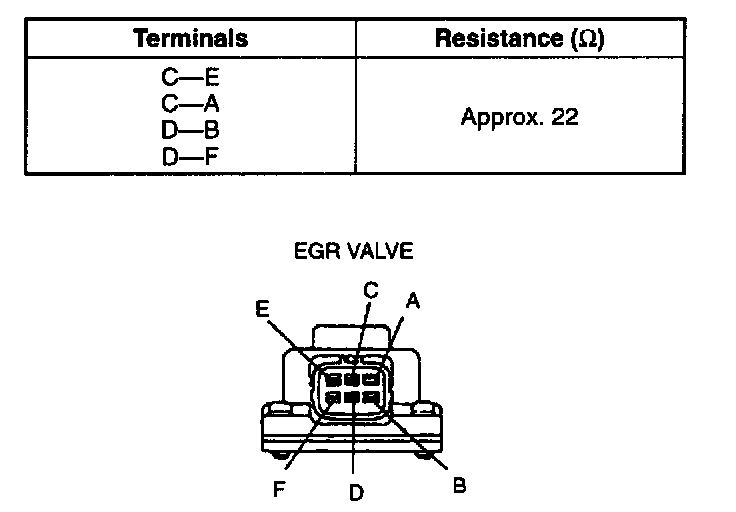 - EGR valve connector terminal F and PCM connector terminal 56 to Ground