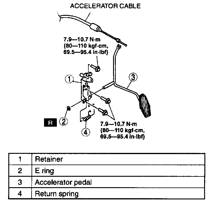 - Set the accelerator pedal securely, taking care not to bend the accelerator cable.