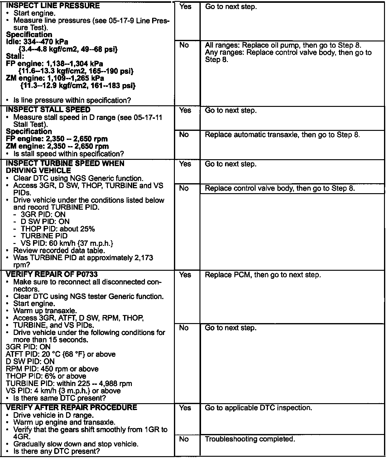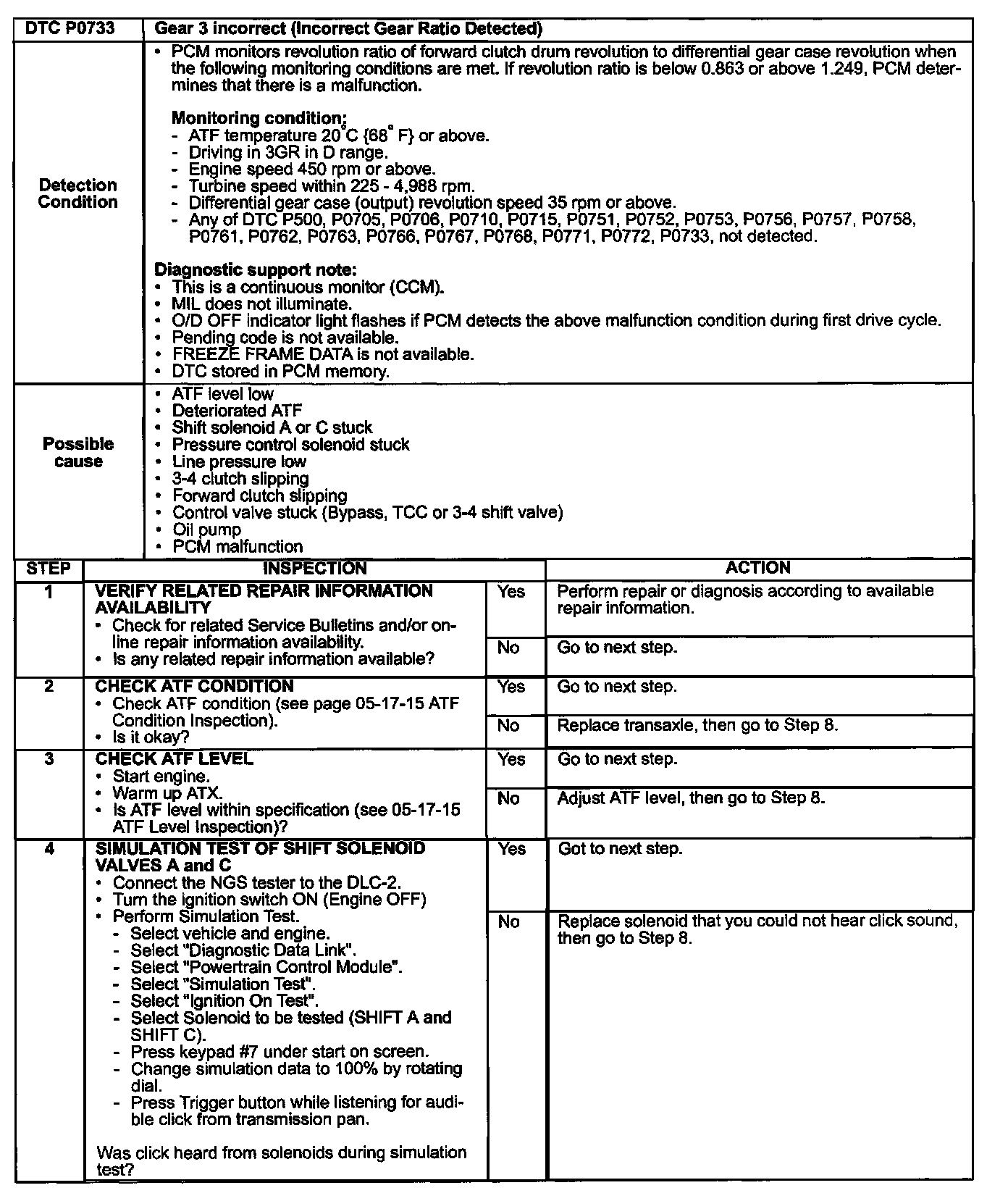 ^ If DTCs P0732, P0733, and/or P0734 re-appear, use the service diagnostics in this bulletin. A Workshop Manual update will be issued which will contain these diagnostics.