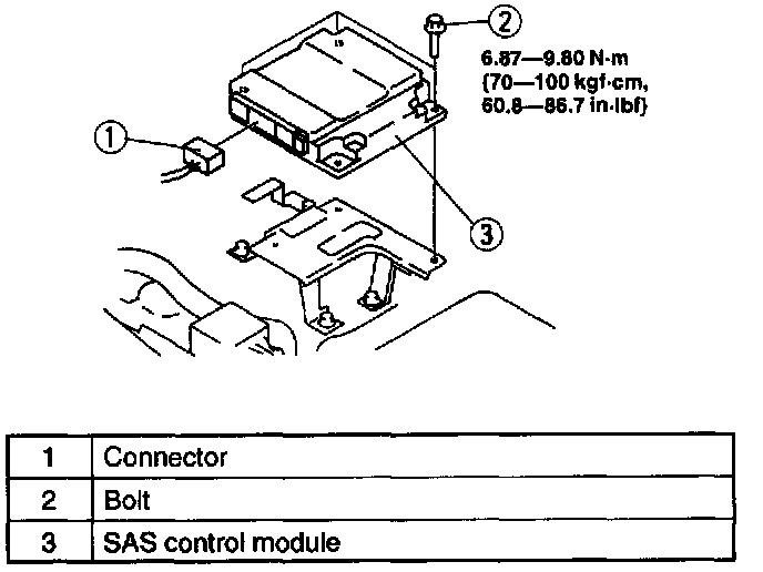 WARNING: Handling the SAS control module improperly can accidentally deploy the air bag modules, which may seriously injure you. Read AIR BAG SYSTEM SERVICE WARNINGS before handling the SAS control module.1. Turn the ignition switch to LOCK position.