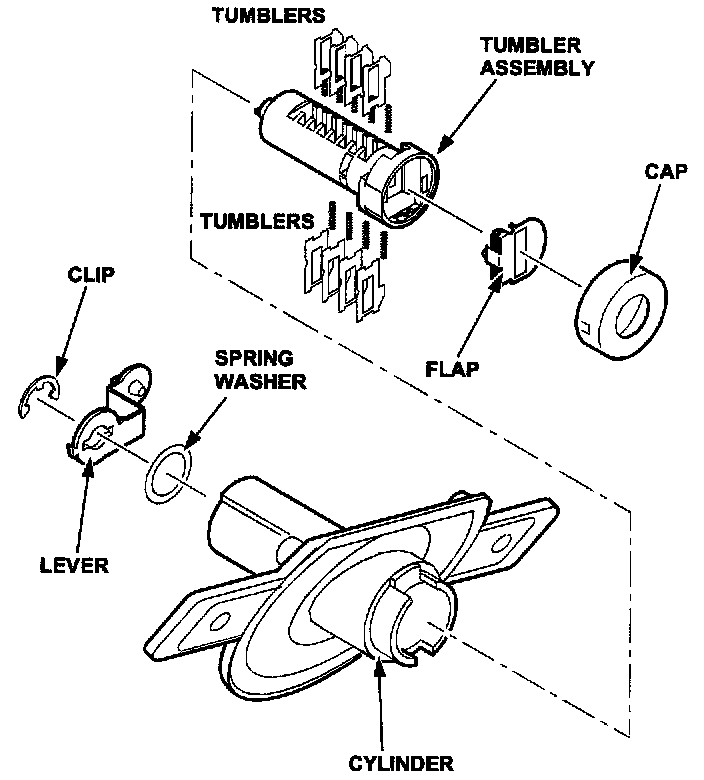 e. On a clean work surface, remove each of the tumblers and place them in their specific sequence, to insure that they will be installed in their original positions.
